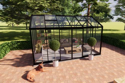 Loungekas Nina, dit is onze hardloper en meest populaire loungekas. Het formaat van deze loungekas spreekt de mensen meteen aan, het is een royale ruimte van 310 x 458 cm en bied de mogelijkheid tot een combinatie van loungen en dineren in uw kas. Dit geeft een extra beleving aan de ruimte als buitenkamer. Hoe heerlijk is het om naast heerlijk te kunnen loungen in een transparante ruimte, ook nog een te kunnen dineren met een prachtig uitzicht op uw tuin? Loungekas Nina, is de ideale loungeruimte voor u als buitengenieter.